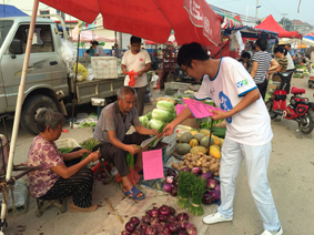 图二:莱芜区域经理韩奎厂走访大集水果蔬菜种植户