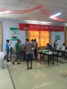 8月21日经过一天紧张筹备,高密高农逐个乡镇邀约长期合作门店参会,并提前商定订货数量,22日早晨7点多零售商陆续赶到会场,开始了解阿康复合肥新品情况,并就当地种植情况跟我们进行了详尽交流。高密夏庄镇徐姓老板告诉笔者,他们乡镇使用阿康主要在大葱上,效果非常明显,长势速度很快。